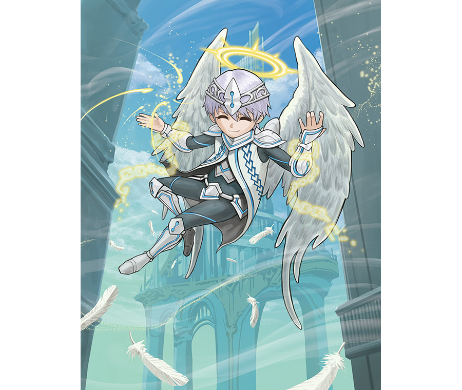 前方を指差した天使の少年が、並んで飛ぶ奇跡の運命者レザエル、奇跡の幻真獣リフィストールに一点の曇りもない笑顔で説明した。